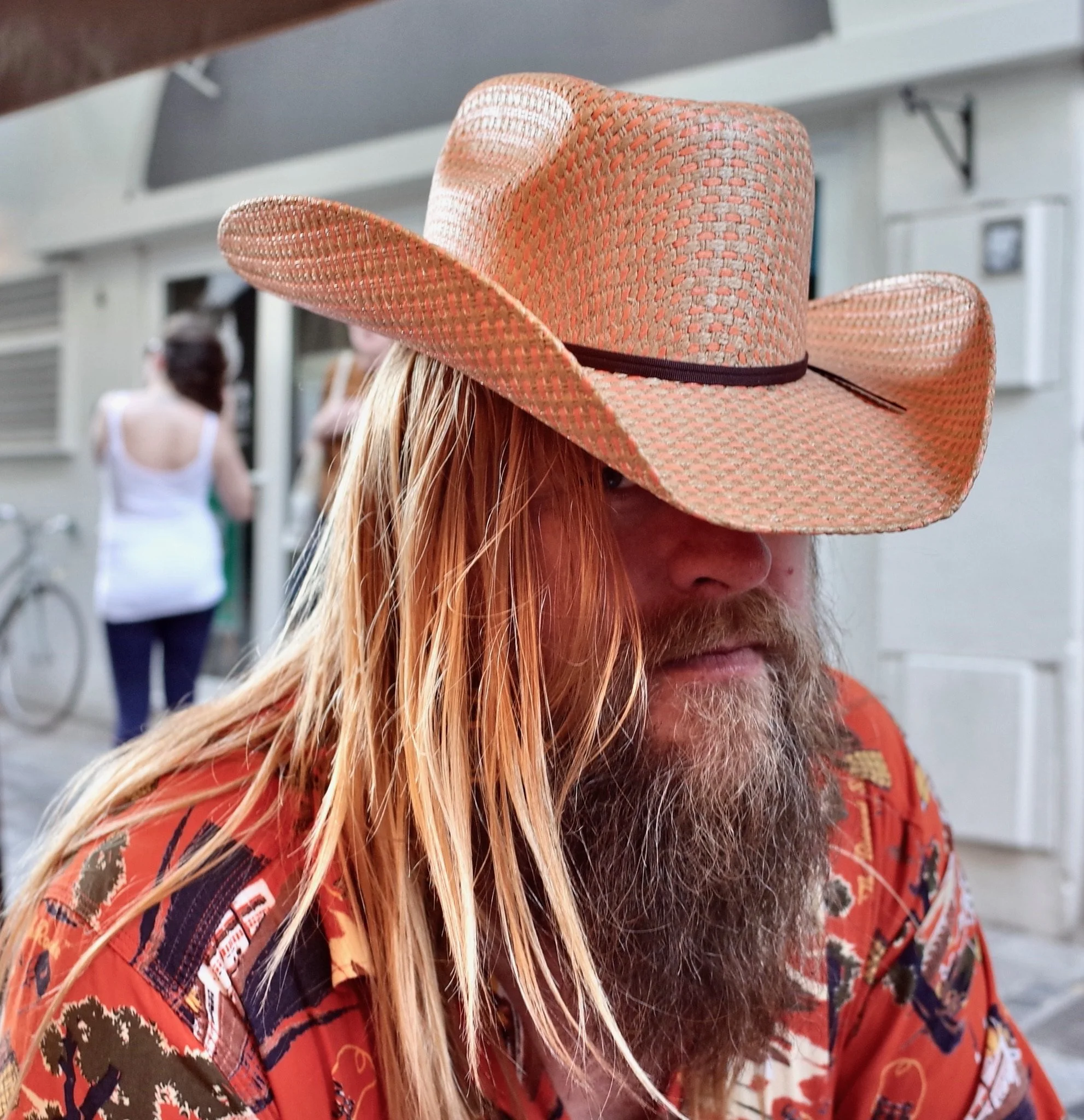 I frequently take photos of people, only occasionally asking permission to do so. When I do ask, I usually begin with a complement, then follow with a request, e.g., “What a lovely hat, do you mind if I take your portrait?” The use of the word portrait is deliberate in order to add dignity to the process. Sometimes, I do not wait for the answer and just confidently and joyfully jump into action snapping away. In any event, my request is rarely denied. Light, background, relationships of foreground to background – check, check, check - then the picture. Strangers, friends, family, fellow pickleball players, even the great photographer Steve McCurry, they’re all targets. I consider these portraits to be street photos as I do them spontaneously with the mindset of a street photographer. External appearance is only part of the picture. Identity matters yet is not always easy to capture in one image. My multifaceted good friend Bruce for example, can be deeply serious one moment, act crazy just for fun another, and is always a health fitness nut. He has three portraits, so far.