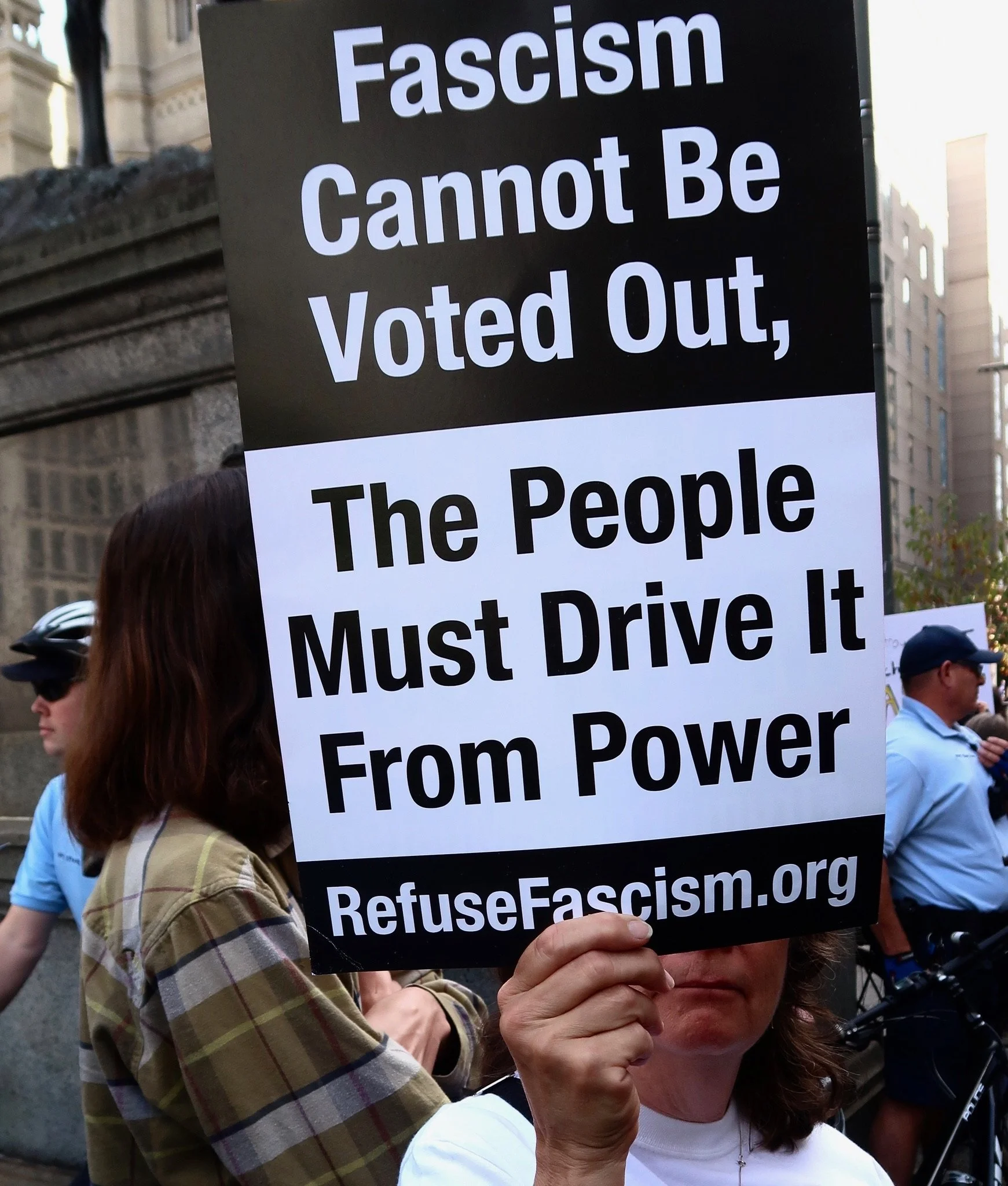 Crowd, noise, movement, posters held high into the glaring sun alternating with deep shadows on faces then vise-versa – not ideal for the photographer. The story lines may be strong (albeit sometimes irrational) but the images tend to be poor. In Canada, people mostly gather outdoors to have festivals. Here, they frequently gather to protest. What upheaval we’ve seen in this country! Extremism from the right, extremism from the left, inner city riots, police violence, mass shootings, gun violence, vaccination and masking resistance, anti-gay, anti-women, anti-Israel activity – each triggering protests for and against. And there am I, a lone figure with a cell phone dodging and darting in the crowd, hoping to get a decent picture. In this situation, street photography comes perilously close to photojournalism, and I must remind myself that I am not there to document the protest as much as to photograph people and their behavior – the heart of street photography.